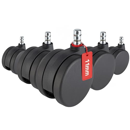 hjh OFFICE 619018 snurrstolshjul för matta Uppsättning av 5 rullar ROLO NO-Noise svart 11 mm x 75 mm, 5-pack, No noise-teknik, Högkvalitativa dubbla hjul för heltäckningsmattor