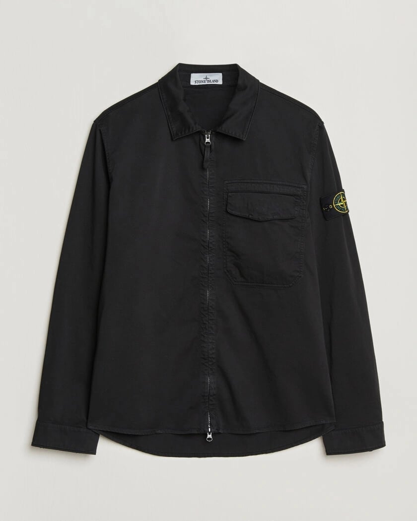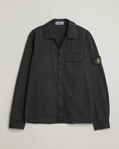 Stone Island Brushed Cotton Canvas Zip Overshirt Black