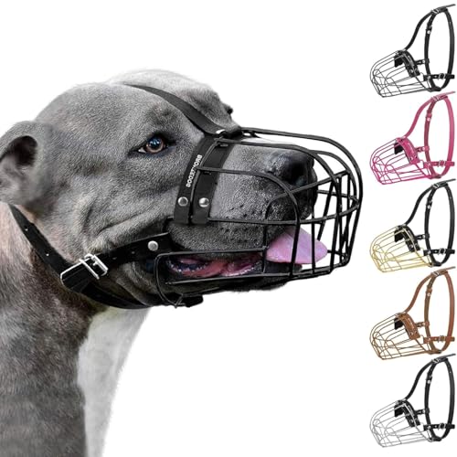 BRONZEDOG Pitbull hundnos metallmask amstaff trådkorg pit tjur justerbara läderremmar för stora hundar (svart)
