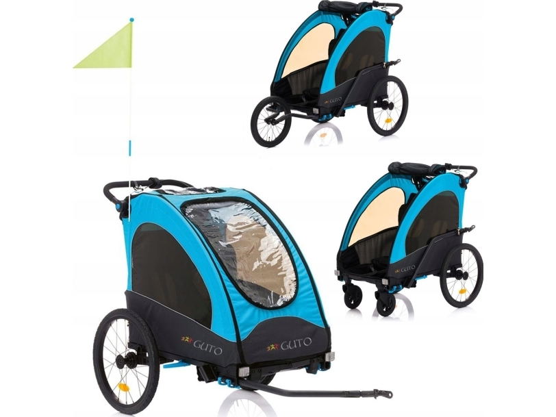 Guto Guto Trailer, Pram, Jogger 3-In-1 Aluminium Deluxe Buggy Pro Svart-Blå, Ean 5909876513148