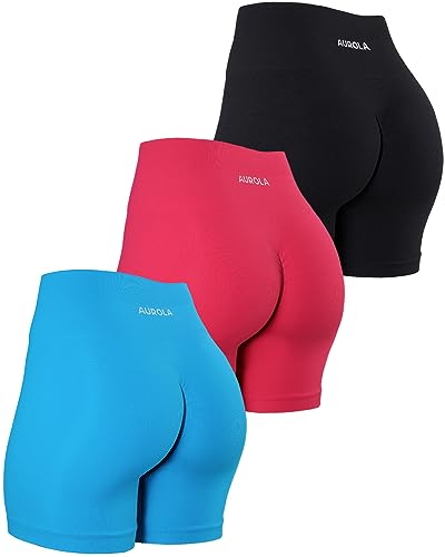 AUROLA Power Workout Shorts for Women 3 Pieces Pack Set,Pack(Black/Raspberry Sorbet/Blue Danube),S