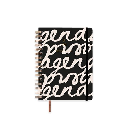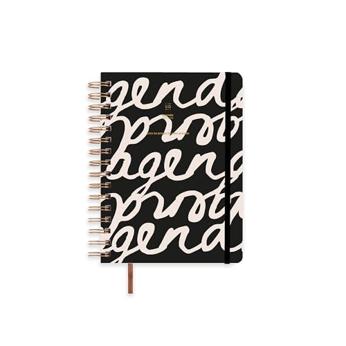 UO Noire Day School Agenda Sida: Börjar i september 2025 och slutar i augusti 2026, hårt omslag, med 127 klistermärken, gummiband och registreringstejp, svart