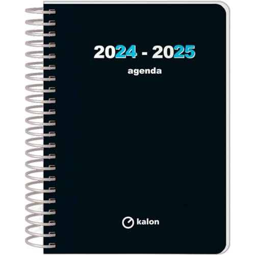 Dohe – Skolplanerare 2024 2025 – dag per sida, A6-storlek (12 x 17 cm), ringpärmslås, spanska och engelska, september till juni, skolmaterial – KALON Black
