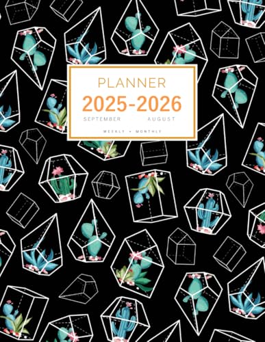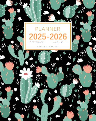 Planner September 2025-2026 August: 8x10 Weekly and Monthly Organizer Large | Cactus Succulent Desert Plant Design Black