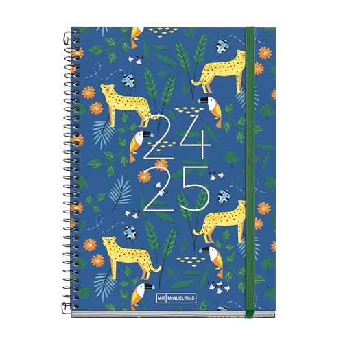 Miquelrius - Skoldagbok 2024–2025, september 24–25 juni 25, 154 x 215 mm, veckokalender, fodrad kartongomslag, agenda 2024 2025, svart metallspiral, spansk och engelsk, djungel
