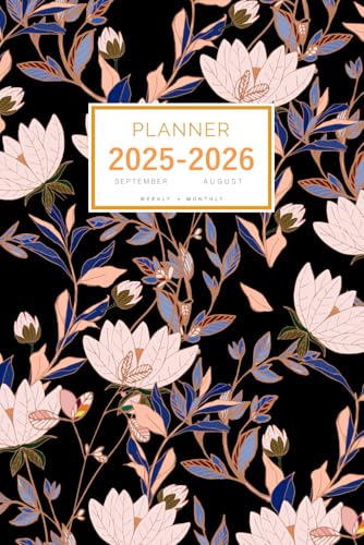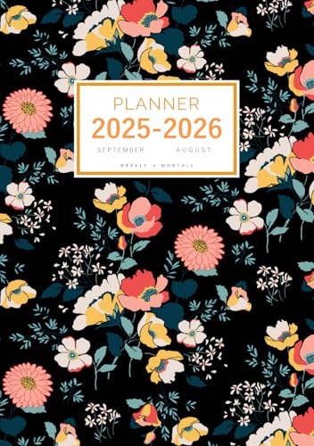 Planner September 2025-2026 August: A5 Weekly and Monthly Organizer | Creative Style Flower Design Black