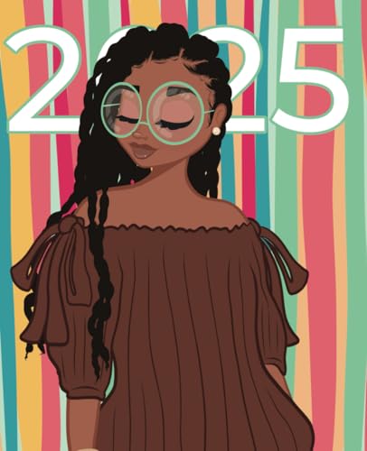 2025 Weekly Planner, HORIZONTAL LAYOUT, September Doll, Black Woman with a Smile: 7.5x9.25 inches, Cute Cover Design, Standard Black & White Interior