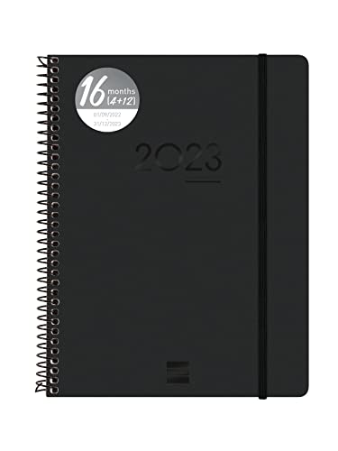Miquelrius - Dagordning ringar 16 månader (September 2022 December 2023) - Dag Sida - Aktiv storlek 117 x 182 mm (ca A6) - Symil Finishing - Svart - Katalanska