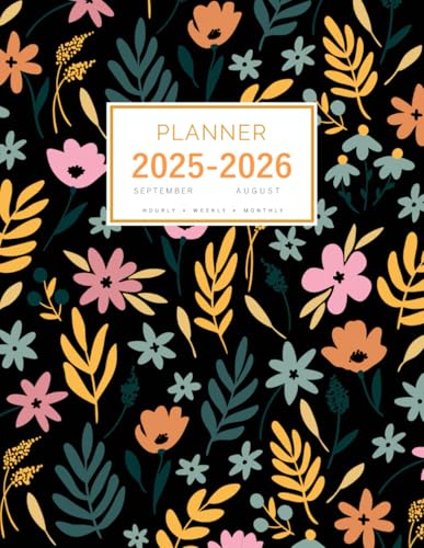 Planner September 2025-2026 August: 8.5 x 11 Large Notebook Organizer with Hourly Time Slots | Cute Floral Pattern Design Black