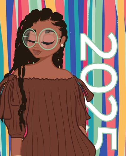 2025 Weekly Planner, VERTICAL LAYOUT, September Doll, Black Woman with a Smile: 7.5x9.25 inches, Cute Cover Design, Standard Black & White Interior