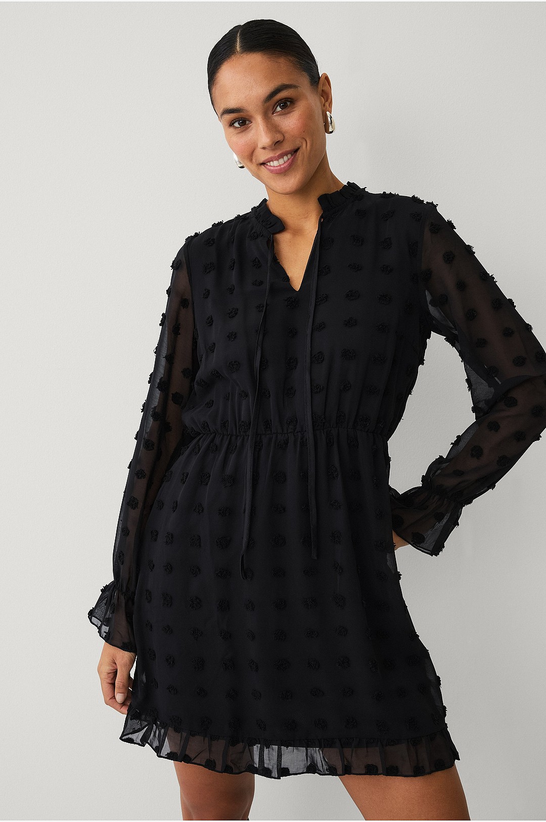Vila - Klänning viLiva L/S Tie Neck Short - Svart