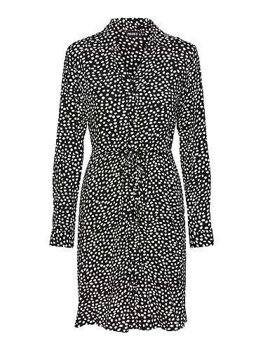 Bestseller A/S Damer Pcnova Ls Tie Dress Noos Bc klänning, Black/Aop: cloud dansare Dot, S