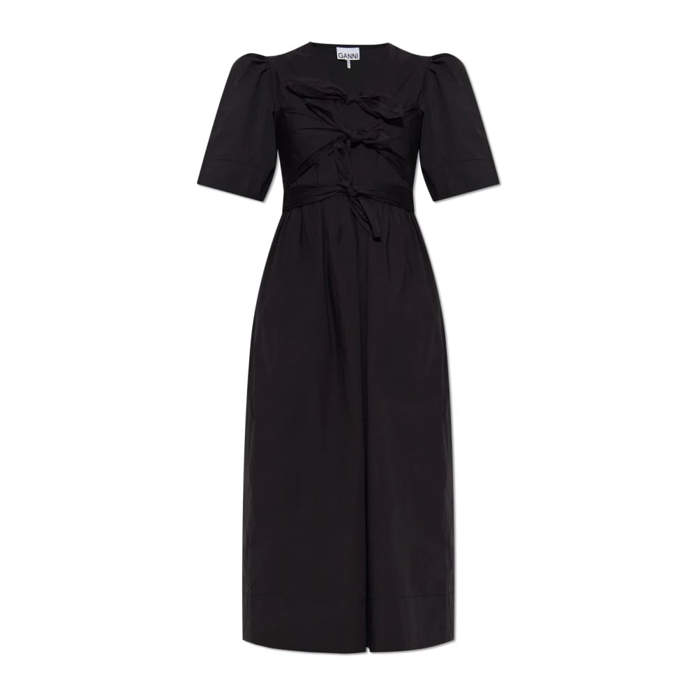 Ganni, Klänningar , Dam, S, Bomull, Stretch Cotton Tie Strap Midi Dress