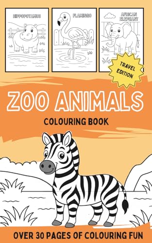 Zoo Animals Colouring Book Travel Edition: A black and white pocket sized activity book filled with lions, giraffes, monkeys and more