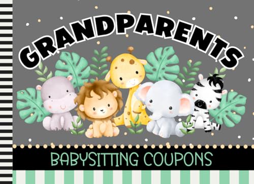 Grandparents Babysitting Coupons: 50 Vouchers / Blank Template Booklet To Fill In / Fun Family Gift / Cute Card Alternative / Colorful Zoo Jungle Animals - Green Gray Black Color Theme Cover