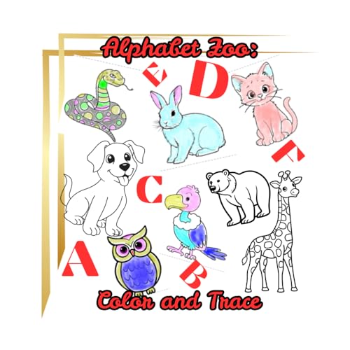Alphabet Zoo: Color and Trace: Cute black-outline illustration of the animals from A to Z to color and learn