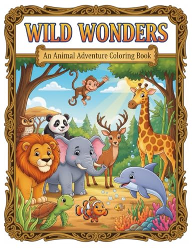 Wild Wonders - An Animal Adventure Coloring Book: A Black & White Adult & Kids Art Activity Featuring Zoo and Wild Creatures in 8.5 x 11 Large Print