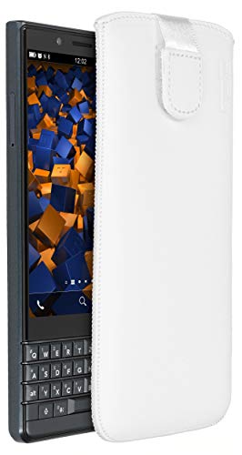 mumbi äkta läderfodral kompatibel med BlackBerry KEY2 LE skal läder väska Case Wallet, vit