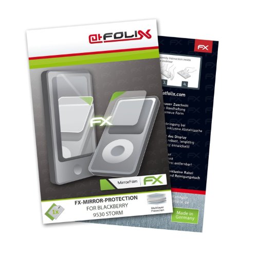 atFoliX Spegelfolie för Blackberry 9530 Storm – FX-Mirror: Spegel skyddsfolie helt speglad! Högsta kvalitet – tillverkad i Tyskland!
