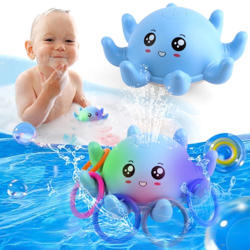 Badkarsleksak baby, bläckfisk spray vattenleksak med ljus, bläckfisk badkar leksak för 1-4 år