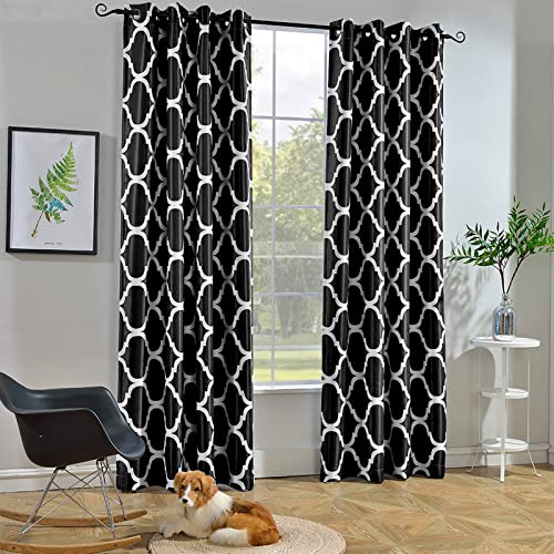 Melodieux Moroccan Room Darkening Blackout Grommet Top Curtains for Living Room, 52 by 96 Inch, Black (1 Panel)