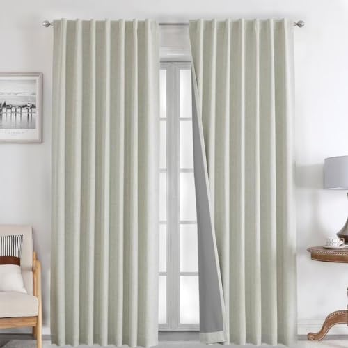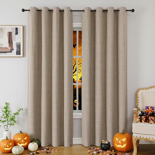 Joydeco 100 % mörkläggningsgardiner för interiörer 2 stycken, linne termiska gardiner med öljetter för modernt vardagsrum, barnrum, sovrum Blackout Curtains (2 x B 245 x H 140, ljusbeige)