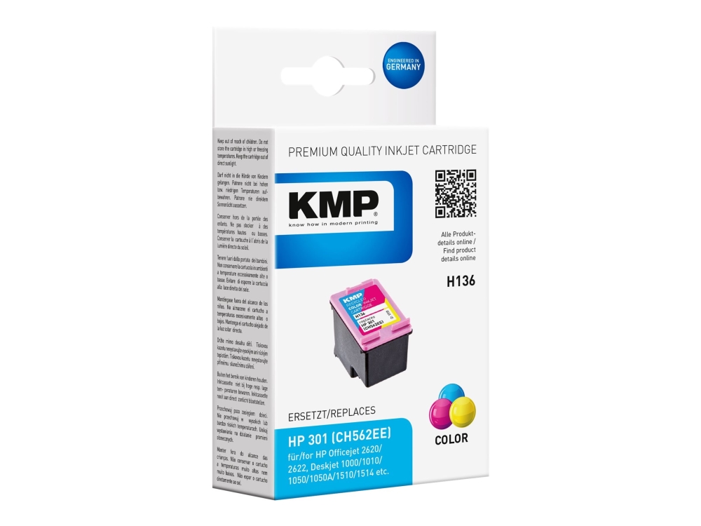 Kmp H136 - 3 Ml - Färg (Cyan, Magenta, Gul) - Kompatibel - Bläckpatron (Alternativ För: Hp 301, Hp Ch562ee) - För Deskjet 1000, 1010, 1050 J410, 1050A J410, 1051A J410, 1055 J410, 1056 J410, 1510, 1512