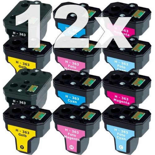 HP 363 XL Set Dubbelt (12-pack) Svart, Cyan, Magenta, Gul, Light Cyan, Light Magenta. Kompatibla bläckpatroner (ej HP original).