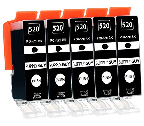 Supply Guy 5 bläckpatroner met chip kompatibel med Canon PGI-520 Svart för Pixma IP3600 IP4600 IP4700 MP540 MP550 MP560 MP620 MP630 MP640 MP980 MP990 MX860 MX870