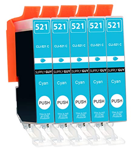 Supply Guy 5 bläckpatroner met chip kompatibel med Canon CLI-521 Cyan för Pixma IP3600 IP4600 IP4700 MP540 MP550 MP560 MP620 MP630 MP640 MP980 MP990 MX860 MX870