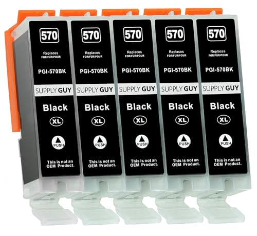 Supply Guy 5 XL bläckpatroner met chip kompatibel med Canon PGI-570 PGBK Svart för Pixma MG5700 MG5750 MG5751 MG6800 MG6850 MG7750 TS5000 TS5050 TS5055 TS6050 TS8050 TS9050 TS9055 och mer
