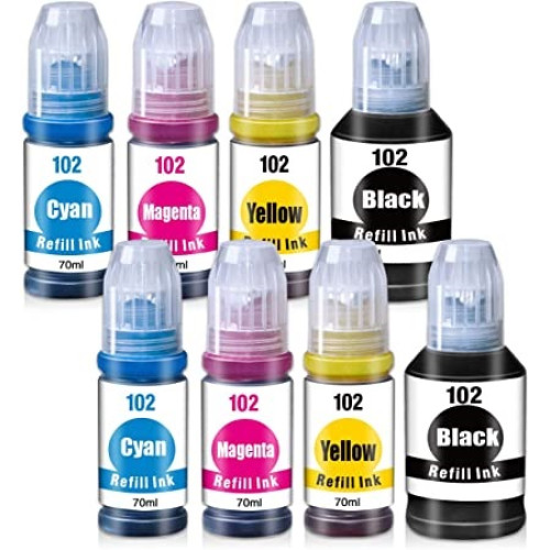 Koala 102 104 bläck kompatibel med Epson 102/104 bläckpatroner för ET-2710 ET-2720 ET-2750 ET-2810 ET-2820 ET-2850 ET-3700 ET-3750 ET-3850 ET-4700 ET-4750 ET-4800 ET-4850 (8 x 70 ml)