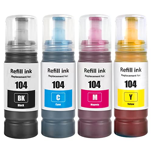 104 bläck kompatibel med Epson 104 bläckpatroner påfyllningsbläck multipack för ET-2710 ET-2711 ET-2712 ET-2714 ET-2715 ET-2720 ET-2721 ET-2726 ET-2810 ET-2820 ET-2821 ET-2825 ET-2826 ET-4700 ET-4800