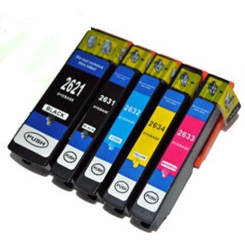 Epson T2636 XL Set 26XL (T2621, T2631, T2632, T2633,T2634) BK/PhBk/C/M/Y. Kompatibla (ej Epson original) bläckpatroner. Fri frakt.