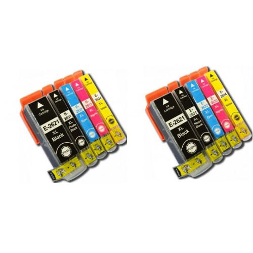 Epson T2636 XL Set Dubbelt 26XL (T2621, T2631, T2632, T2633,T2634) BK/PhBk/C/M/Y. Kompatibla (ej Epson original) bläckpatroner. Fri frakt.