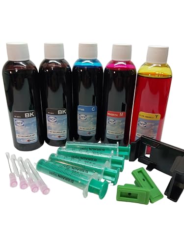 refill24 påfyllningsset: Påfyllningsbläck 200 ml kompatibel för bläckpatroner HP 302, 302 XL svart och färg multipack tillbehör instruktioner, påfyllningsset med skrivarbläck för DeskJet OfficeJet