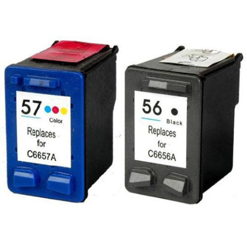 2 kompatibla bläckpatroner för skrivare för HP 56 + 57 HP DeskJet 450 5145 5150 5151 5550 5552 5650 5652 5655 5850 9650 9670 9680 Officejet 4105 42 42 12 422 15 4219 4252 4255 4259 5500 5505 5508 5510