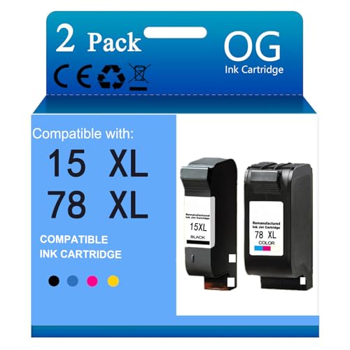 OGOUGUAN Ersättning för HP 15 78 2 bläckpatroner kompatibla med Deskjet 3810 3820 815c 916c 920c 940c 948c Officejet 5110 V30 V40 V45 PSC 2120 700 720 750 760 9000 950