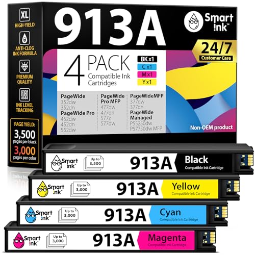 Smart Ink kompatibla bläckpatroner kompatibel med HP 913A 913 A 4 multipack (svart, blå, röd, gul) kompatibel med PageWide Pro 477dw 577dw 452dw 477dn 452dn 577z 552dw P55250dw skrivare