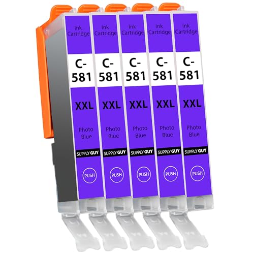 Supply Guy 581XXL Bläckpatroner Fotoblå kompatibla med Canon CLI-581 XXL för TS8150 TS8250 TS8350 TS8350a TS8351 TS8351a TS8352 Multipack 5 patroner 581 XXL