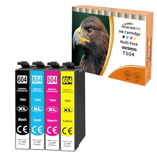 Starlet24 604XL 604 multipack kompatibel ersättning för Epson 604XL 604 bläckpatroner för Epson XP-2200 XP-2205 XP-3200 XP-3205 XP-4200 XP-4205 WF2910DWF WF2930DWF WF2950DWF, 4 han pack