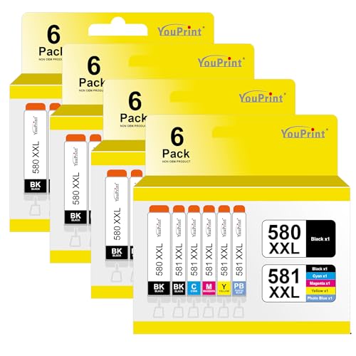 24 YouPrint bläckpatroner för Canon PGI-580 CLI-581 XXL inkl. Fotoblå lämplig för skrivaren Canon Pixma TS8150, TS8250, TS8350(a), TS8351(a), TS8352(a), TS9150 multipack Canon 580 581