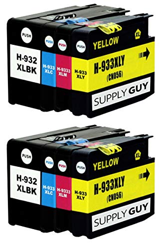 Supply Guy 8 bläckpatroner kompatibel med HP 932 933 932XL 933XL avsedd för HP OfficeJet 6100 6600 6700 7110 7510 7600 7610 7612 (Multipack - Svart, Cyan, Magenta, Gul)