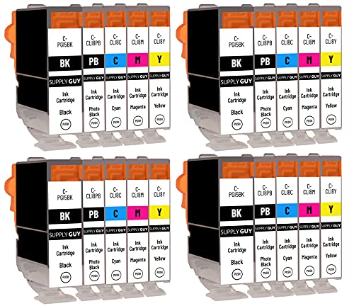 Supply Guy 20 bläckpatroner kompatibel med Canon PGI-5 CLI-8 Multipack för IP4200 IP4200 Series IP4200X IP4300 IP4500 IP4500 Series IP4500X IP5200 IP5200R IP5200 Series IP5300 MP500 MP530