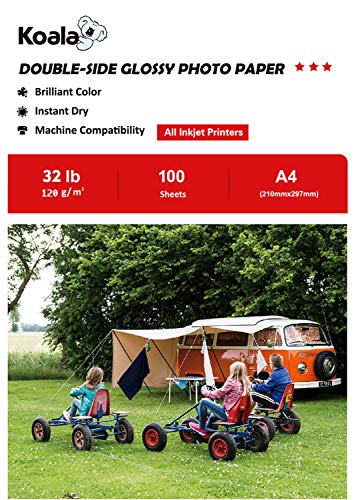 KOALA Ljust dubbelsidigt fotopapper för bläckstråleskrivare, A4, 120 g/m², 100 ark. Lämplig för utskrift av foton, broschyrer, certifikat, häften, flygblad, flygblad, kalendrar