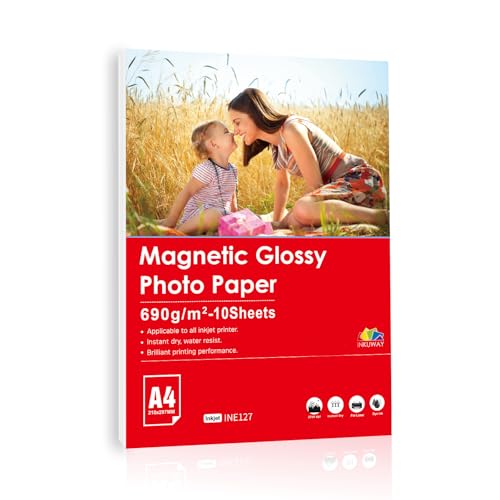INKUWAY A4 utskrivbara magnetiska ark 10 ark högglansigt tjockt manget fotopapper för bläckstråleskrivare.