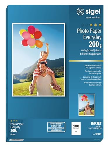 SIGEL IP712 fotopapper, bläckstråleskrivare, glansig, 200 gsm, A4, 100 ark