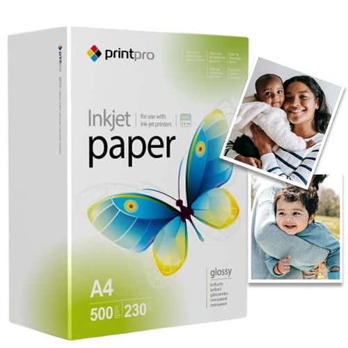 Fotopapper PrintPro från COLORWAY högblank 230g/m² 500 ark DIN A4 omedelbart torr vattentät för alla bläckstråleskrivare