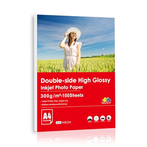 Inkuway A4 tungvikts tjockt fotopapper 300 Gsm bläckstråleskrivare 100 ark glansig yta för utskrift av foto, gratulationskort, vykort