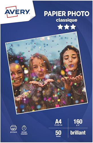 Avery fotopapper glänsande A4, 50 ark, för bläckstråleskrivare, klassisk, 160 g/m²